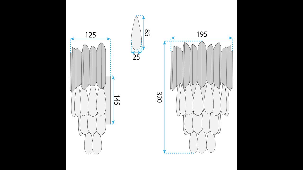 Závěsné křišťálové prvky dodávají kinketu lehkost a dekorativní hloubku a vytvářejí efekt jemné hry světla na stěně. Svítidlo je určeno pro žárovku se závitem E14, což umožňuje volit barvu i výkon světla podle potřeb aranžmá.