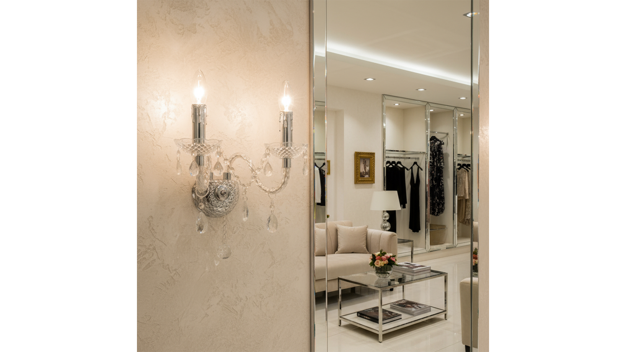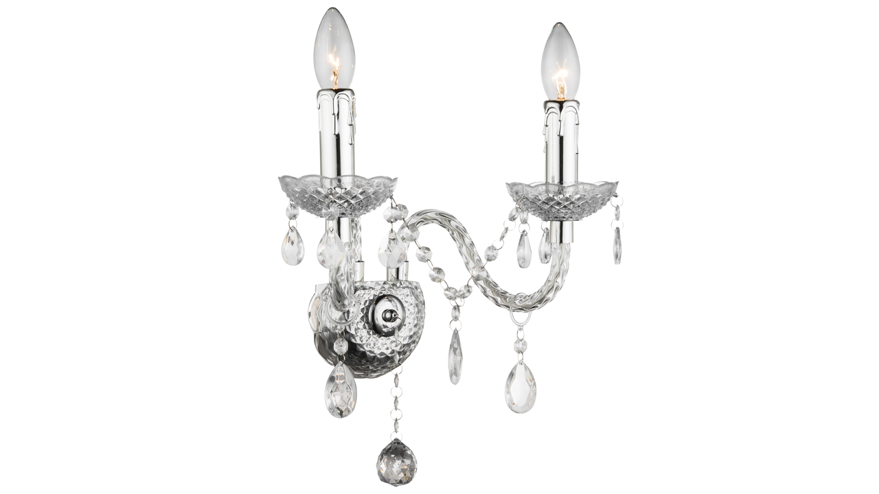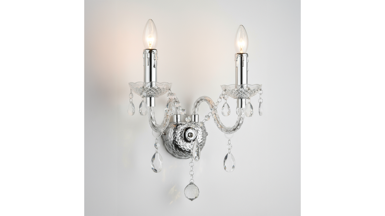 Stylový dvouramenný nástěnný svícen spojuje klasický design s moderní funkčností. Dekorativní detaily a jemné závěsy mu dodávají jedinečný charakter, díky čemuž se skvěle hodí jako akcentní osvětlení do obývacího pokoje, ložnice, chodby nebo jídelny.