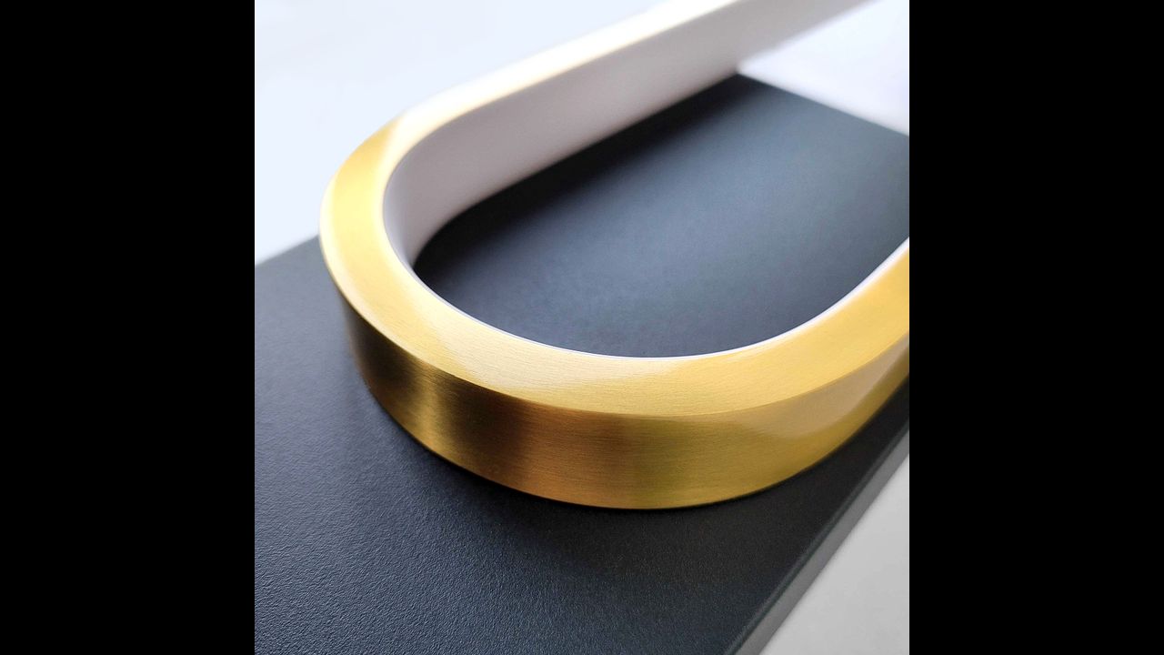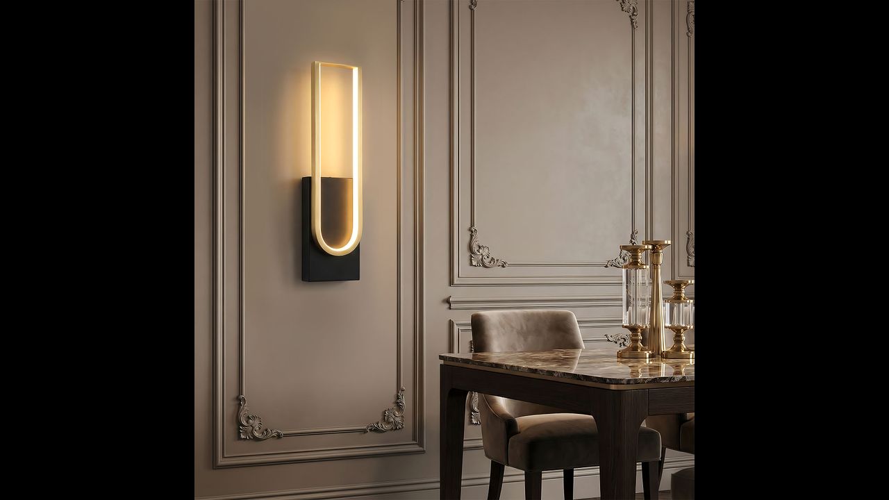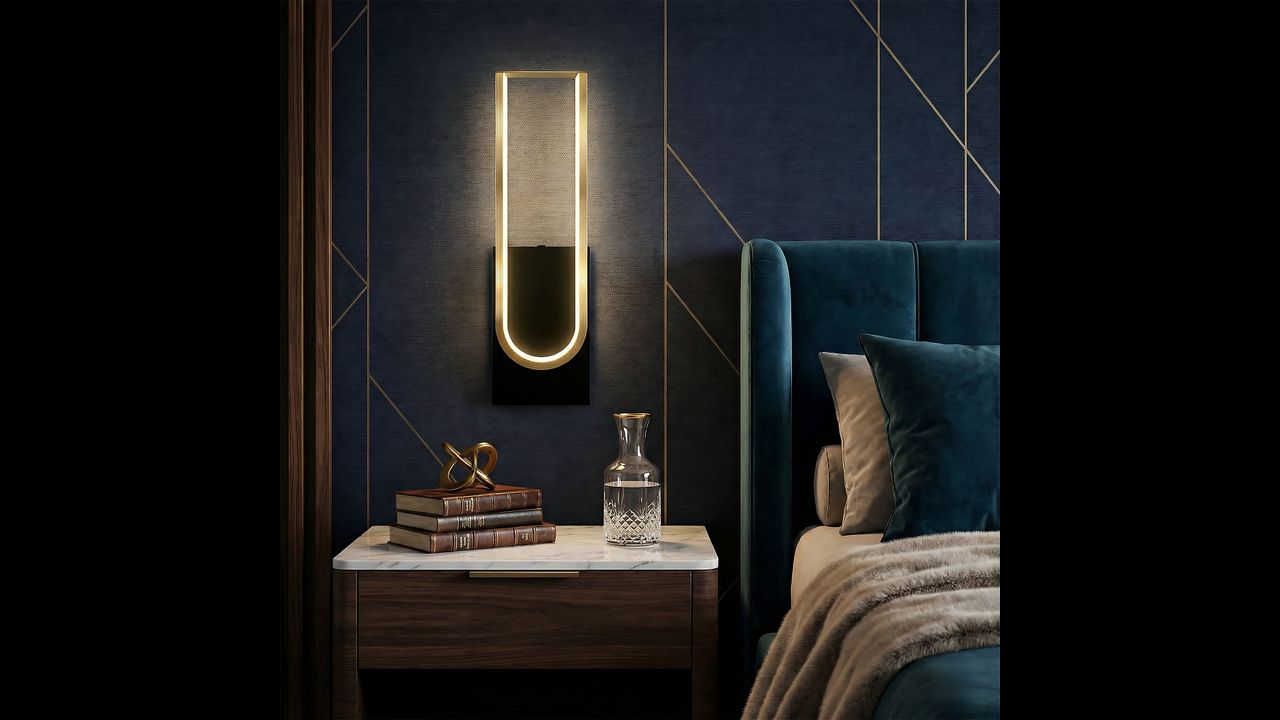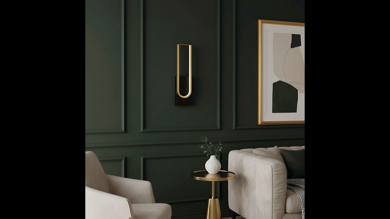 Tento elegantní LED nástěnný svítilna spojuje moderní minimalismus s luxusním provedením. Model vyniká černou základnou a dekorativním rámem v odstínu kartáčovaného zlata. Uvnitř konstrukce je veden LED pásek, který vyzařuje rovnoměrné, měkké světlo ideální pro vytvoření atmosférické nálady.
