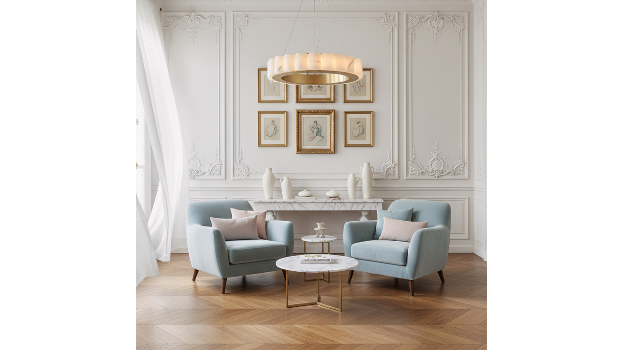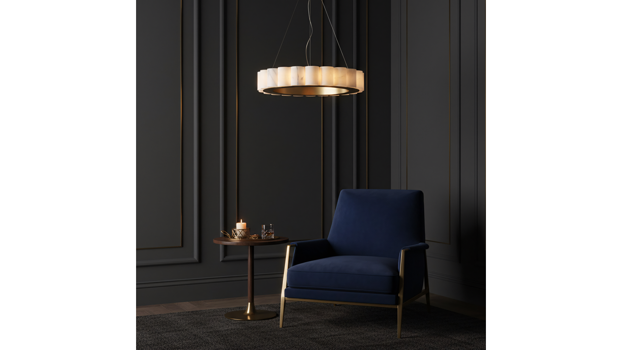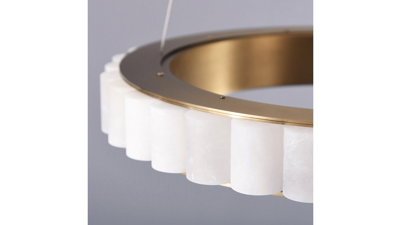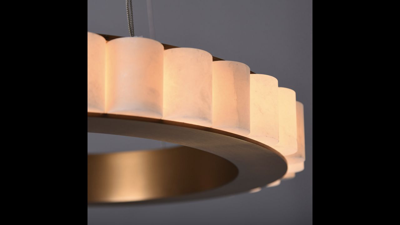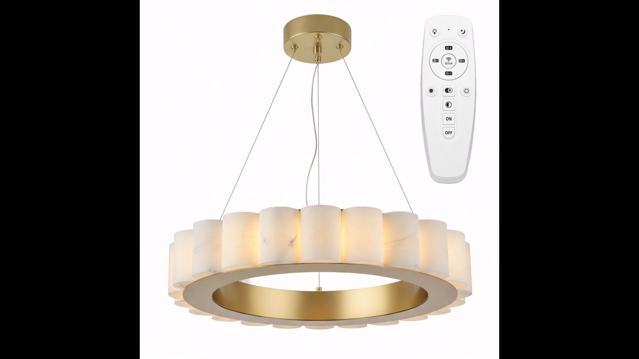 Toto výjimečné LED závěsné svítidlo spojuje moderní minimalismus s elegantním výrazem. Konstrukce je vyrobena z kovu v odstínu kartáčovaného zlata, což dodává celku ušlechtilý a dekorativní charakter. Kolem kulatého těla jsou rozmístěny válcové moduly z bílého, poloprůsvitného materiálu s texturou přírodního kamene. Jemné žilkování a měkké rozptýlení světla působí luxusně jak ve dne, tak při zapnutém LED osvětlení. Model je vybaven pokročilým LED modulem s dálkovým ovládáním, který umožňuje plně přizpůsobit světlo náladě i účelu místnosti. Uživatel může lampu zapínat a vypínat, volit denní nebo noční režim, plynule zvyšovat a snižovat jas a upravovat teplotu barev v rozsahu 3000K–6000K — od teplého, útulného tónu až po studené světlo podporující práci a soustředění. K dispozici je také rychlá změna na 2700K, 4000K a 6500K a přesná regulace výkonu. Nastavitelná výška zavěšení umožňuje instalaci v nízkých i vysokých místnostech, díky čemuž je svítidlo ideální nad jídelní stůl, do obýváku, kuchyně, reprezentativní haly nebo elegantních firemních prostor. Zlacená konstrukce, detailní zpracování a dekorativní moduly s mramorovým efektem dělají z lampy působivý středobod interiérů ve stylu glamour, modern classic, premium contemporary i moderních luxusních prostorů.