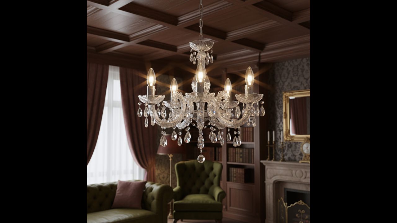 Hodí se nad jídelní stůl, do obývacího pokoje, haly i ložnice. Skvěle funguje ve stylech modern classic, glamour a art déco.
