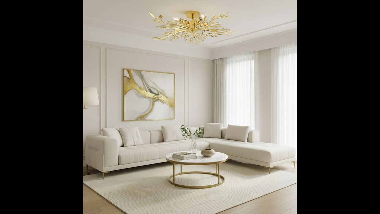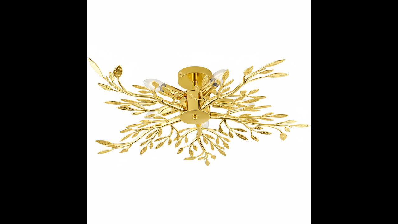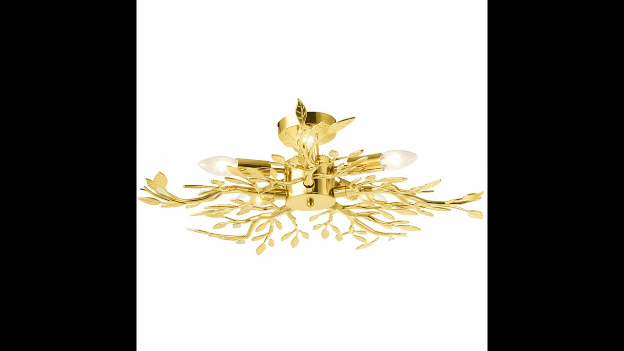 Moderní stropní lampa ve zlaté barvě je výjimečné spojení elegance a lehkosti inspirované přírodou. Zlaté provedení vnáší do interiéru teplý lesk a dekorativní listové prvky dodávají jemný, umělecký charakter. Lampa krásně prosvětlí prostor a vytvoří útulnou, náladovou atmosféru v obýváku, ložnici či jídelně. Díky efektní formě je nejen zdrojem světla, ale i stylovým dekorativním prvkem, který interiéru dodá třídu a vytříbený šarm. Skvělá volba pro milovníky elegantního designu a zlatých akcentů.