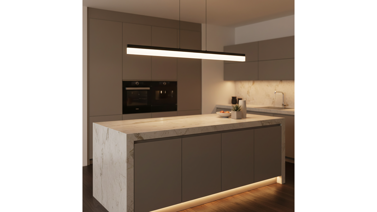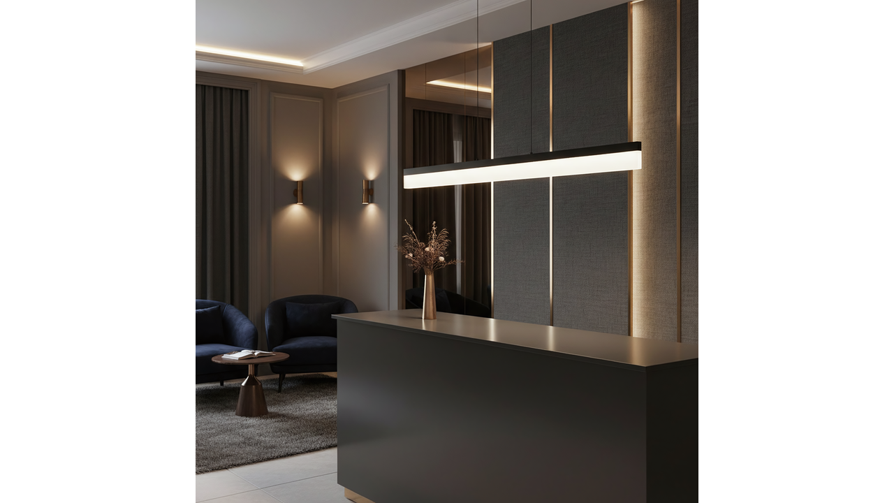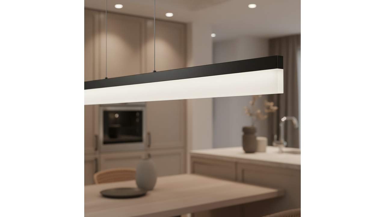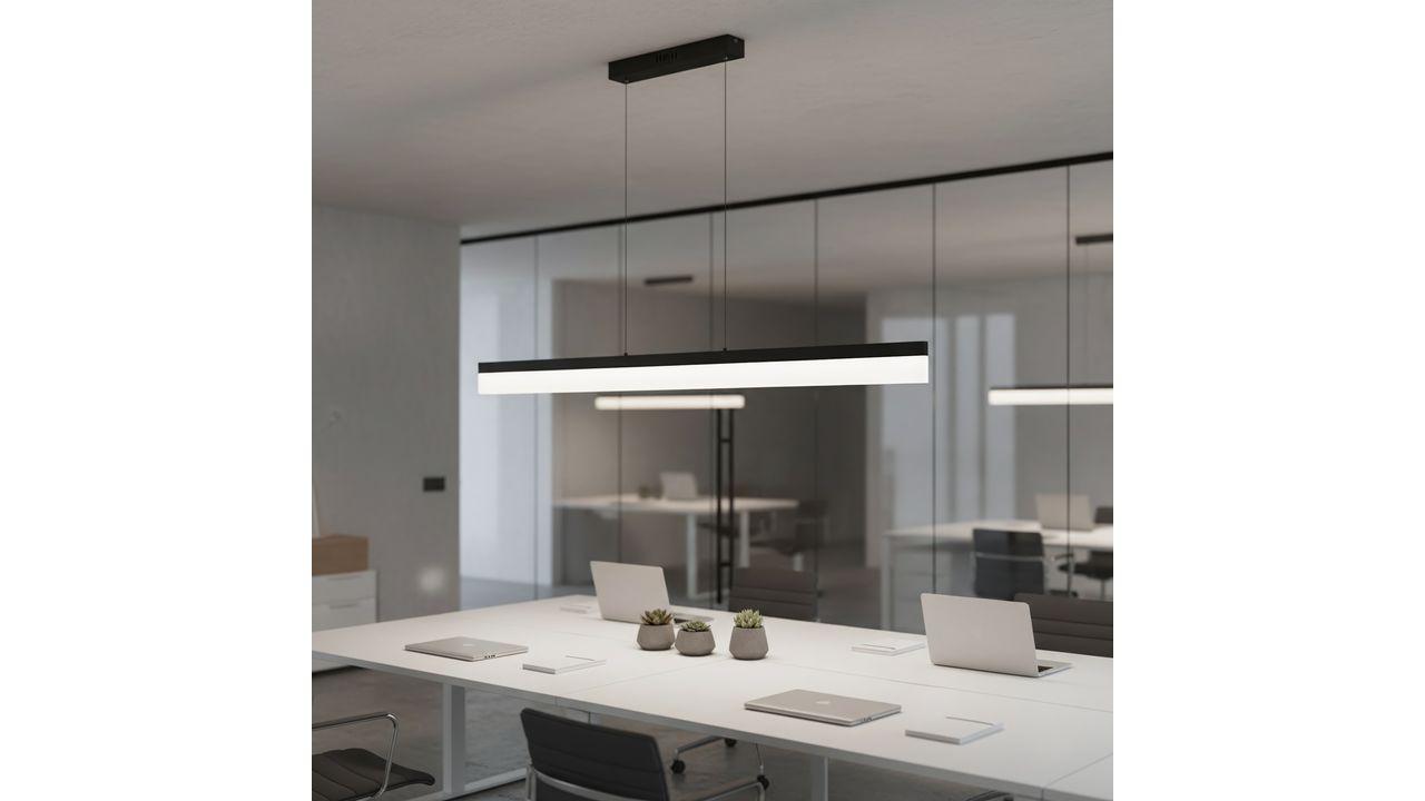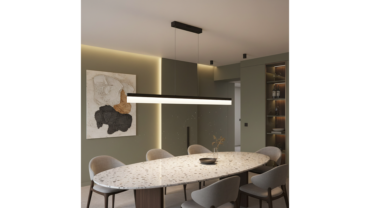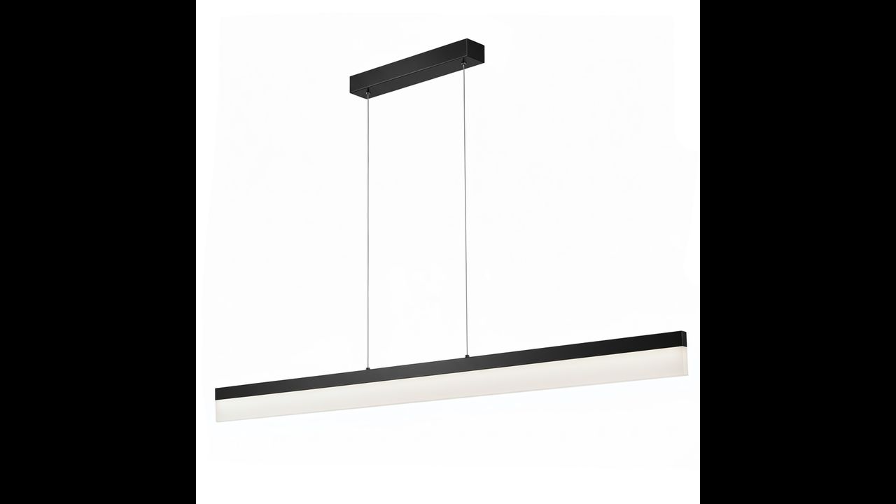 Tento štíhlý LED závěsný lustr v černém matu skvěle zapadne do moderních, loftových a minimalistických interiérů. Kovová konstrukce v černé povrchové úpravě mu dodává výrazný architektonický charakter a dlouhý světelný panel z matného (frosted), poloprůhledného akrylu poskytuje měkké a rovnoměrné osvětlení.