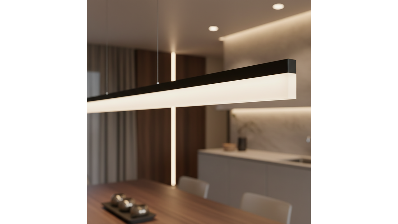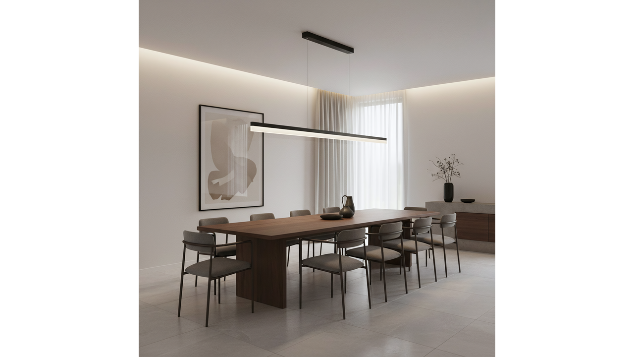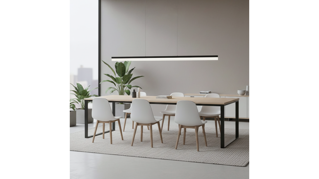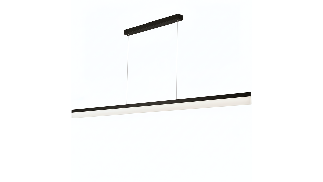 Tento štíhlý LED závěsný lustr v černém matu skvěle zapadne do moderních, loftových a minimalistických interiérů. Kovová konstrukce v černé povrchové úpravě mu dodává výrazný architektonický charakter a dlouhý světelný panel z matného (frosted), poloprůhledného akrylu poskytuje měkké a rovnoměrné osvětlení.
