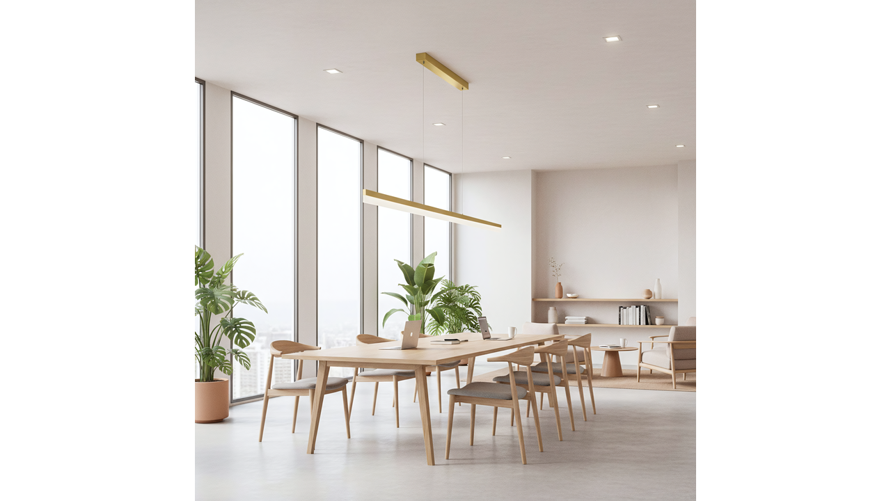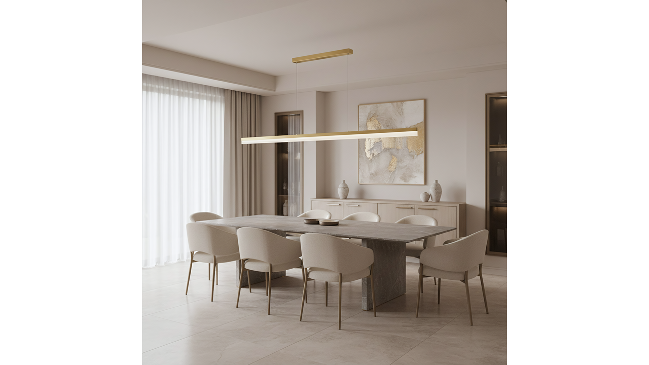 Integrovaný LED modul vyzařuje neutrální světlo 4000K, ideální pro každodenní použití — nad jídelním stolem, kuchyňským ostrůvkem, v obýváku, kanceláři nebo komerčních prostorech. Nastavitelná výška zavěšení umožňuje přizpůsobit lampu dispozici místnosti a vytvořit ideální zdroj světla pro práci i odpočinek.