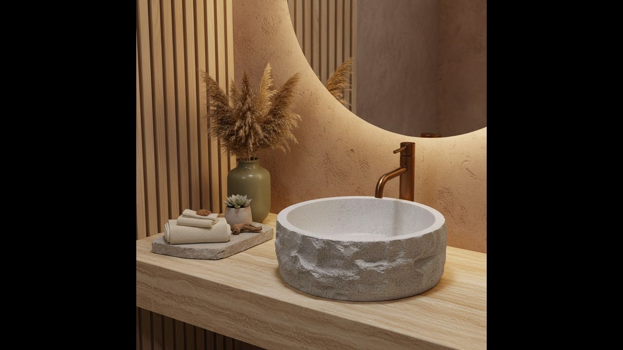 Umyvadlo Rea Alice je ideální volbou pro milovníky designu inspirovaného přírodou. Jeho surový vzhled se skvěle hodí do moderních, minimalistických i wabi-sabi interiérů a vnese do koupelny výrazný organický akcent.