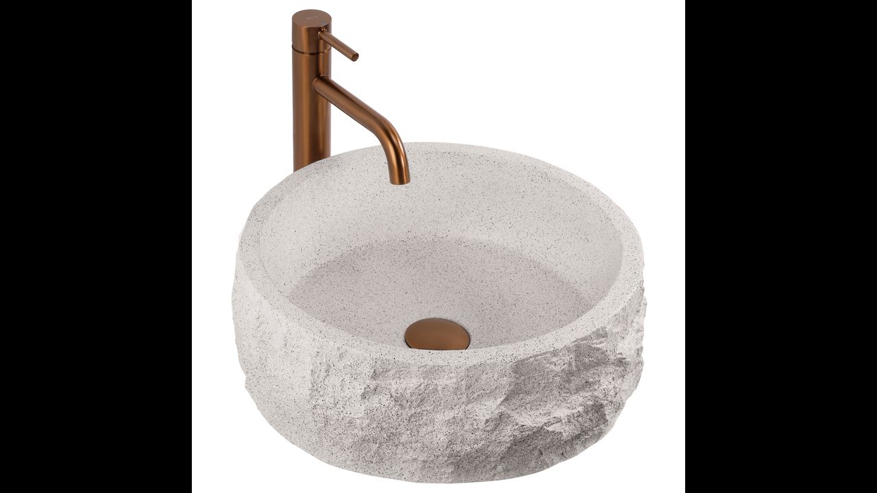 Zvol umyvadlo na desku Rea Alice, pokud hledáš výrazný, přírodní akcent do své koupelny. Tento kulatý model skvěle kombinuje surový vzhled kamene s moderní funkčností a komfortem při používání.