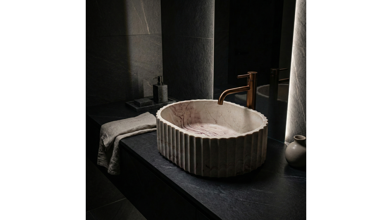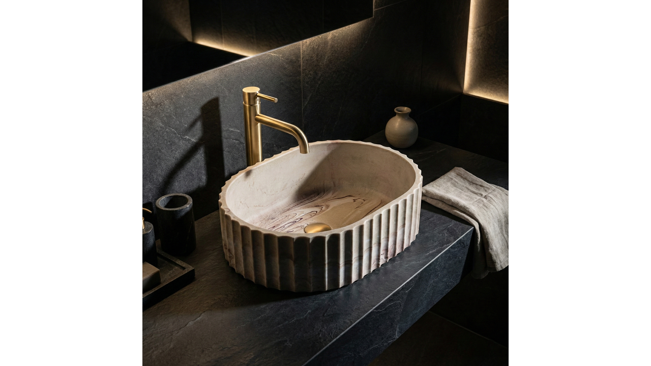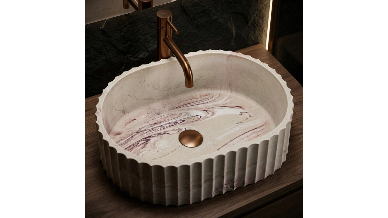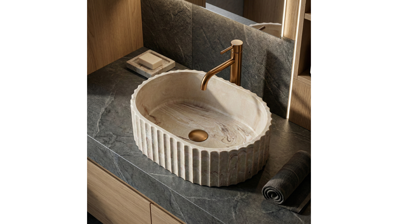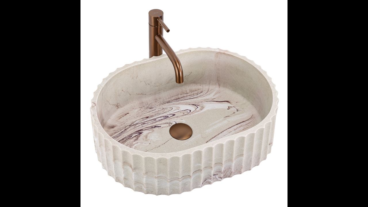 Dodejte své koupelně přirozenou eleganci s umyvadlem na desku Rea Margaret Gio. Tato varianta vyniká výrazným rýhovaným tělem a kamenitou barevností inspirovanou přírodou. Díky odolnému kompozitu Artificial Stone spojuje dekorativní design s vysokou praktičností pro každodenní používání.