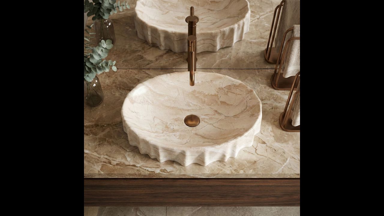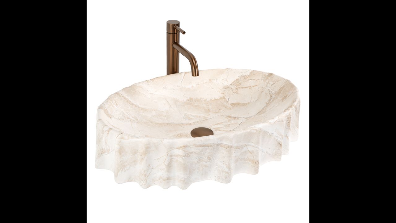 Umyvadlo na desku Aurelia Reno je volbou pro ty, kteří v koupelně hledají něco víc než standardní tvar. Jeho nepravidelná, organická linie připomíná vytesaný blok kamene, díky čemuž se mísa stává výrazným prvkem interiéru a okamžitě přitahuje pozornost. Vlněný okraj a masivní forma vytvářejí dojem luxusního designového akcentu, který skvěle zapadne do moderních prémiových prostor i projektů inspirovaných přírodou a architekturou spa.
