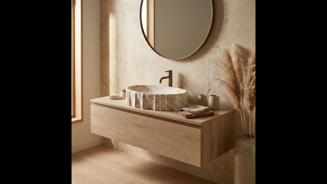 Povrch je dokončen jemným kamenným vzorem s delikátním mramorovým žilkováním ve světlých, teplých tónech. Tato barevnost dodává interiéru lehkost a eleganci a zároveň se krásně kombinuje se světlými deskami, přírodním dřevem i s tmavšími, kontrastními aranžemi. Oválná, hluboká mísa zajišťuje komfort při každodenním používání a hladké vykočení podtrhuje exkluzivní charakter modelu Aurelia Reno — je působivé na pohled a zároveň praktické pro moderní koupelnu.