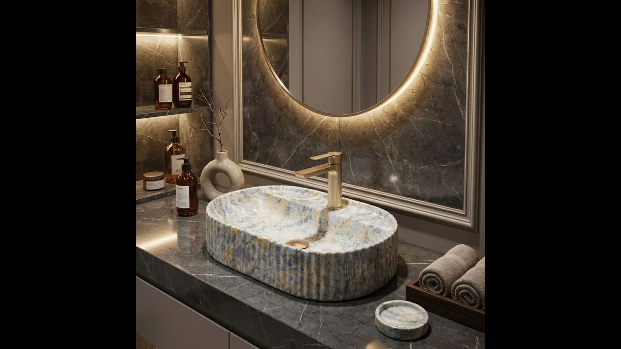 Hledáš originální design spojený s vysokou funkčností? Zvol umyvadlo na desku Rea Marcela 60 Ruststone. Tento model zaujme jedinečným kamenným vzorem a žebrovanou formou a zároveň nabízí maximální komfort při používání.
