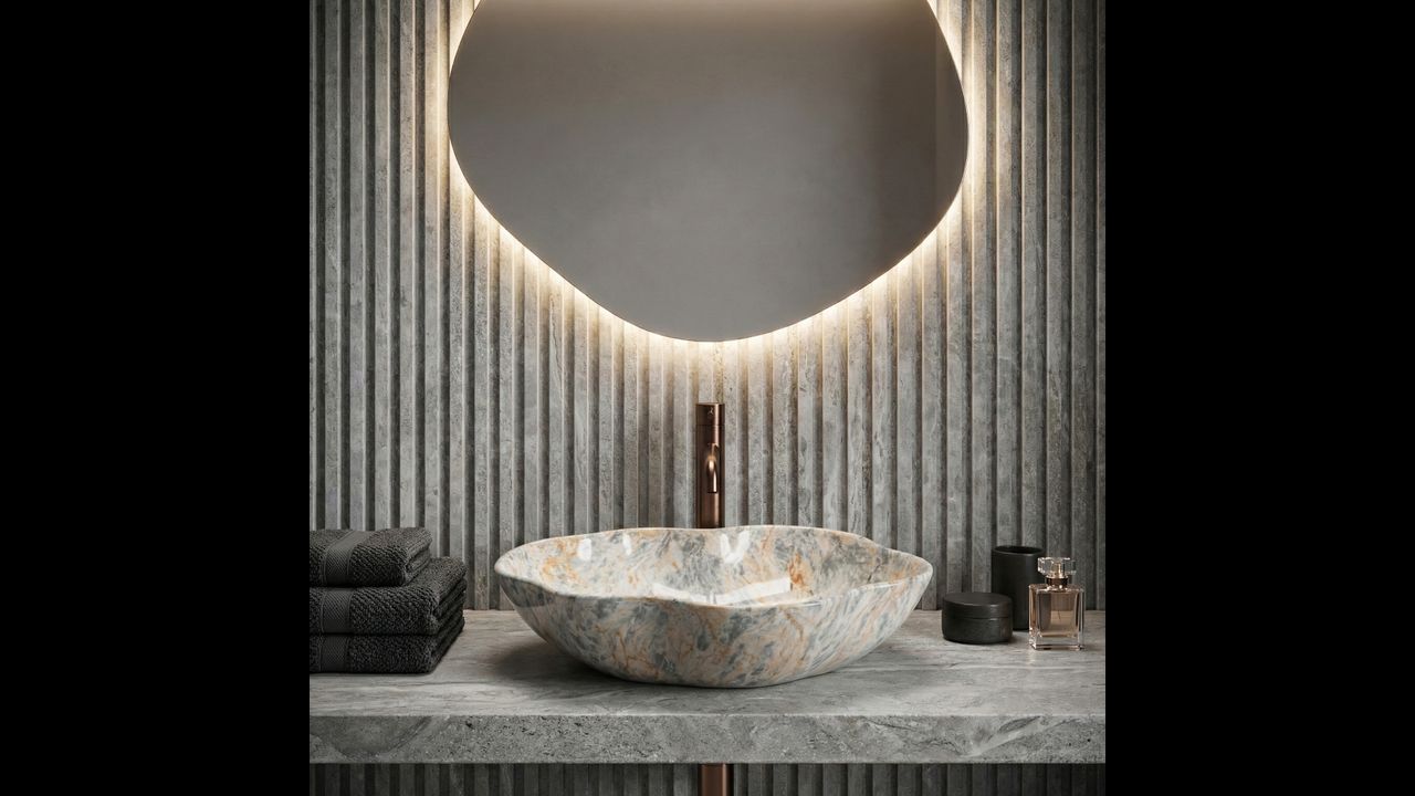 Zvolte výrazný prvek do koupelny a vyberte si umyvadlo na desku Rea Pearl Ruststone. Tento model spojuje užitné výhody sanitární keramiky se surovou estetikou kamene. Vyniká asymetrickým tvarem a jedinečným povrchem v mnohorozměrných odstínech šedé a rezavě hnědé.