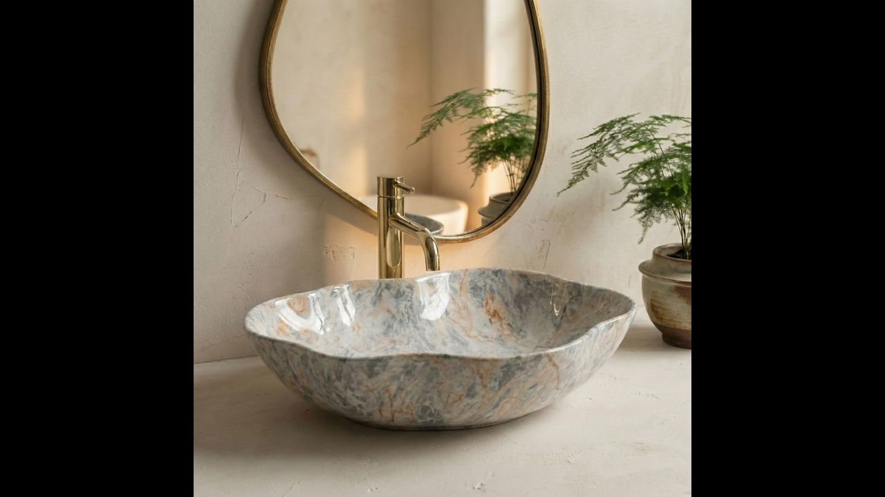Umyvadlo Rea Pearl Ruststone je volbou pro ty, kteří oceňují výrazný design. Spojení netypické formy s каменным dekorem z něj dělá funkční ozdobu, která účinně naruší monotónnost koupelnového interiéru.