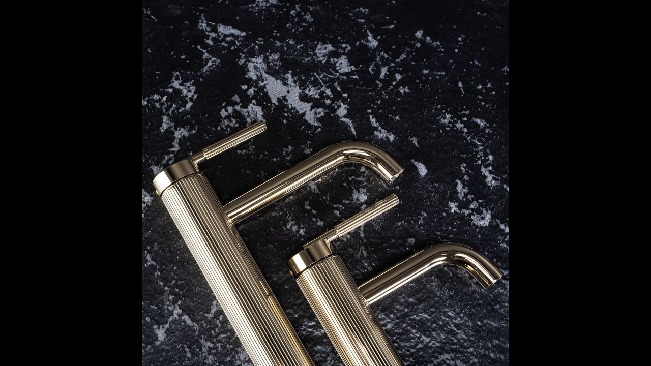 Dokonale navržená a neobyčejná svými tvary baterie je vyrobena z vysoce kvalitní mosazi s úpravou ve zlatém provedení. Lakování baterie bylo provedeno celkem ve třech vrstvách, díky čemuž je odolná vůči korozi a ztrátě barvy.
