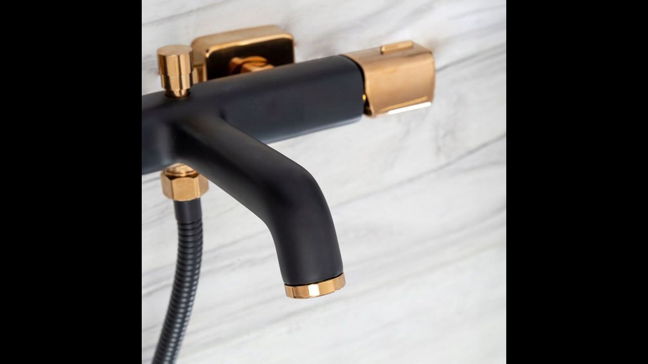 Dokonale designovaná vanová baterie série Rea Salto je baterie vyrobená z vysoce kvalitní mosazi s úpravou v černém matném provedení se zlatými prvky (čtvercové krytky, perlátor, madlo). Lakování baterie bylo provedeno celkem ve třech vrstvách a díky tomu je odolná vůči korozi a ztrátě barvy.